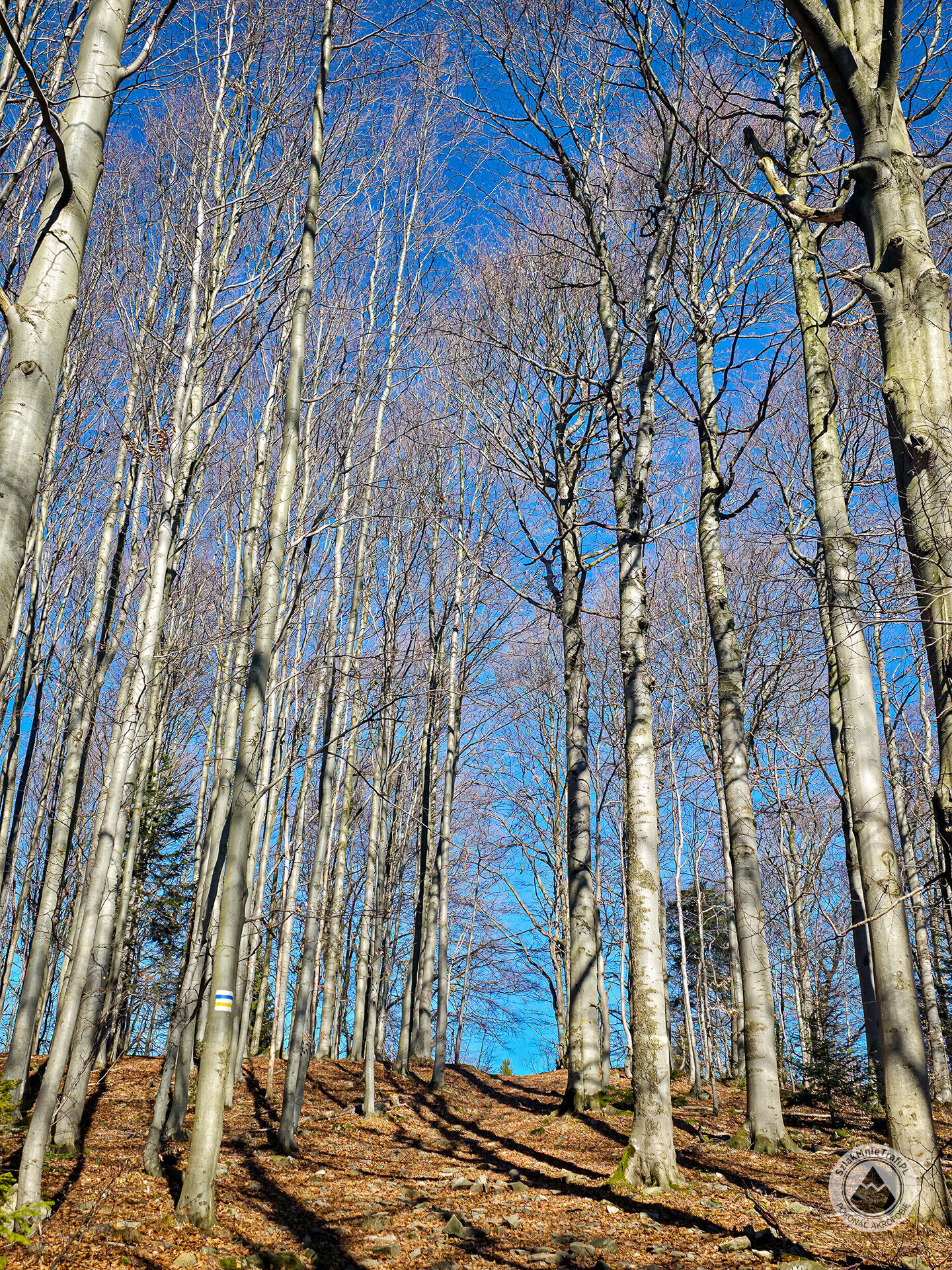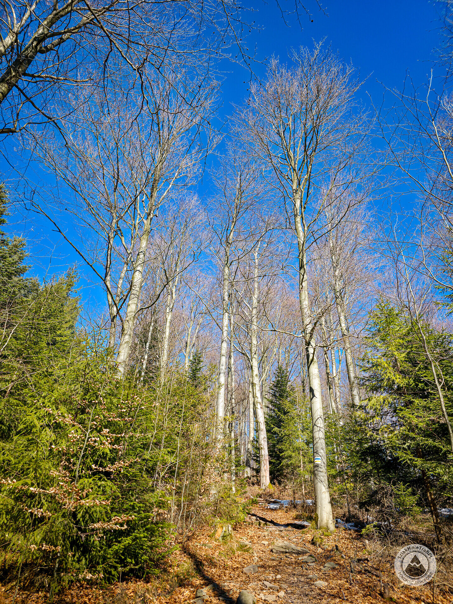 Trasa może zawierać odcinki z zakazem wstępu z psami. Stosuj się do znaków w terenie.