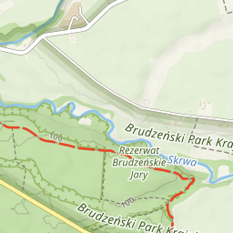Szlak lub jego fragment z zakazem wstępu z psami. Stosuj się do znaków w terenie - Rezerwat przyrody Brudzeńskie Jary. Informacje