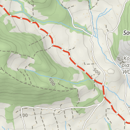 Informacja Na mapie przedstawiony jest planowany przebieg szlaku, omijający teren prywatny. Oznaczenie szlaku w terenie planowane planowane jest na sierpień 2023.