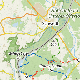 Urozmaicony szlak, bogaty w liczne punkty widokowe i panoramy, wzniesienia, doliny rzek, jeziora, głazy narzutowe oraz moc zabytków. Rozpoczyna się na Wzgórzach Bukowych i przez Równinę Wełtyńską zmierza do zachodniej części Pojezierza Myśliborskiego.